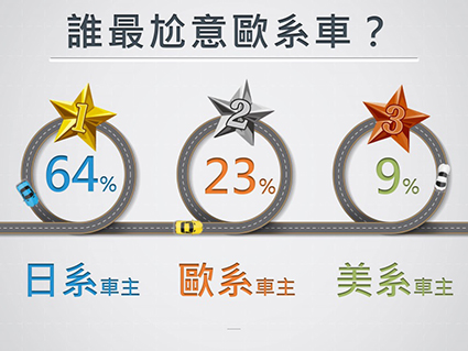 以品牌而言,除了Infiniti為日系車,前一、二名的品牌都屬美系車!而整體而言,日系車主對歐洲車的購車意願較高,韓系車主相對無感,看來韓國人愛用國貨這句話還真是不容小覷呢!